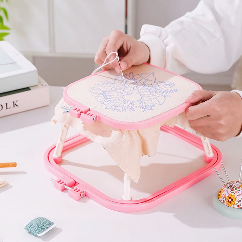 This double-layer embroidery stand is designed to sit comfortably on your desk, freeing your hands from holding the embroidery hoop and making stitching more comfortable. Easy to assemble and stable, it provides a convenient workspace for punch embroidery, beadwork, and other detailed embroidery projects, suitable for both beginners and experienced artists.