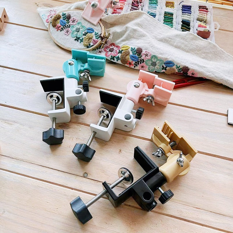 Made from eco-friendly ABS plastic and aluminum, this versatile embroidery hoop clamp offers excellent stability and easy installation. It can securely attaches to desks, chair armrests, chair backs, easels, or even drawers, providing stable support for embroidery or weaving projects. The clip has sponge padding inside, so it won't damage your furniture. The clamp rotates 360 degrees and tilts ±270 degrees for optimal positioning. Compatible with embroidery hoops ranging from 3cm to 40cm in diameter and suitable for various materials like bamboo, plastic and wooden hoops. If you are using a super large embroidery hoop, you can use two clips to increase stability. It also functions as a mobile phone stand or craft support when not in use.