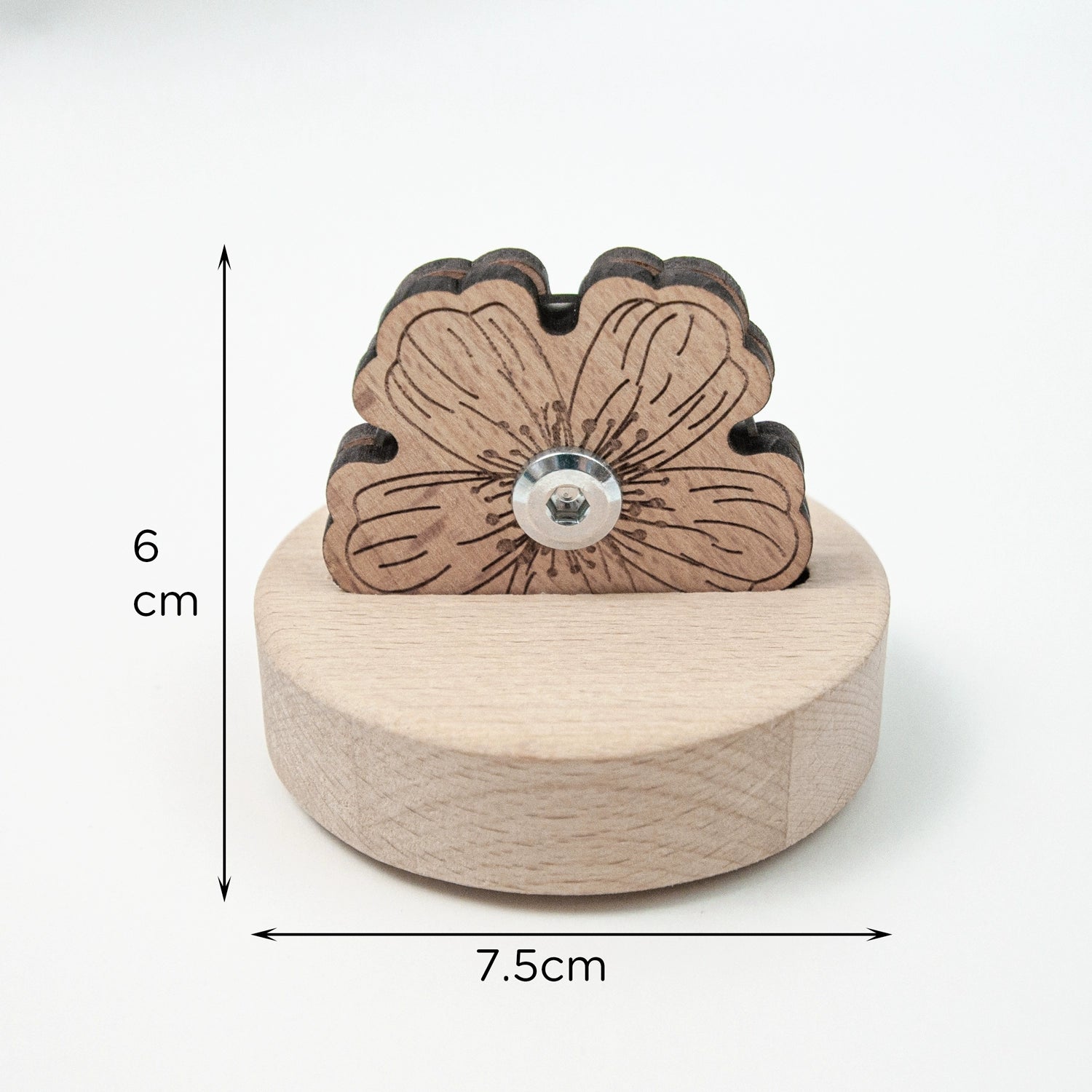 This elegant wooden thread cutter features a beautiful flower shape carved from beech wood. Equipped with a sharp SK5 high carbon steel blade, it provides precise and clean cuts. The sturdy base allows it to stand upright on your workspace, making it easy to use and store. Perfect for tailoring, crafting, or sewing projects, this stylish tool combines functionality with aesthetic appeal.
