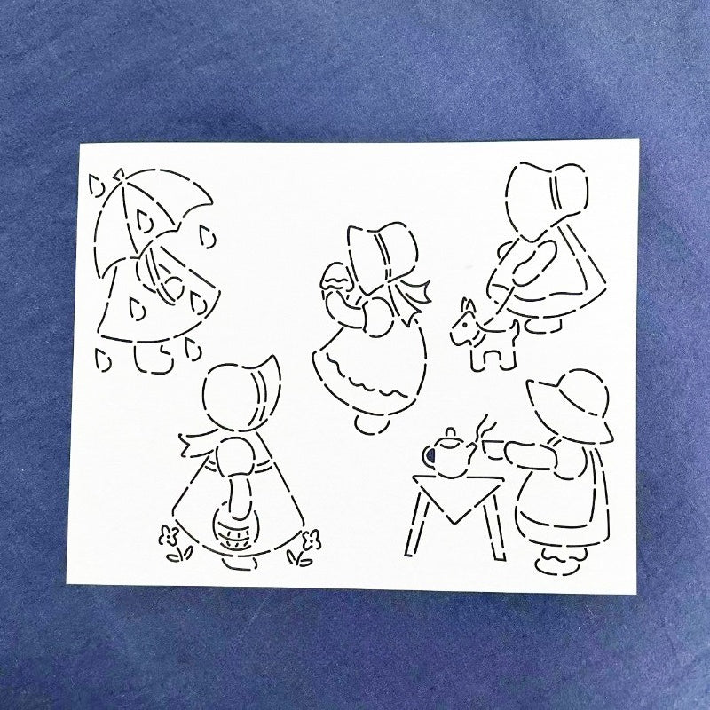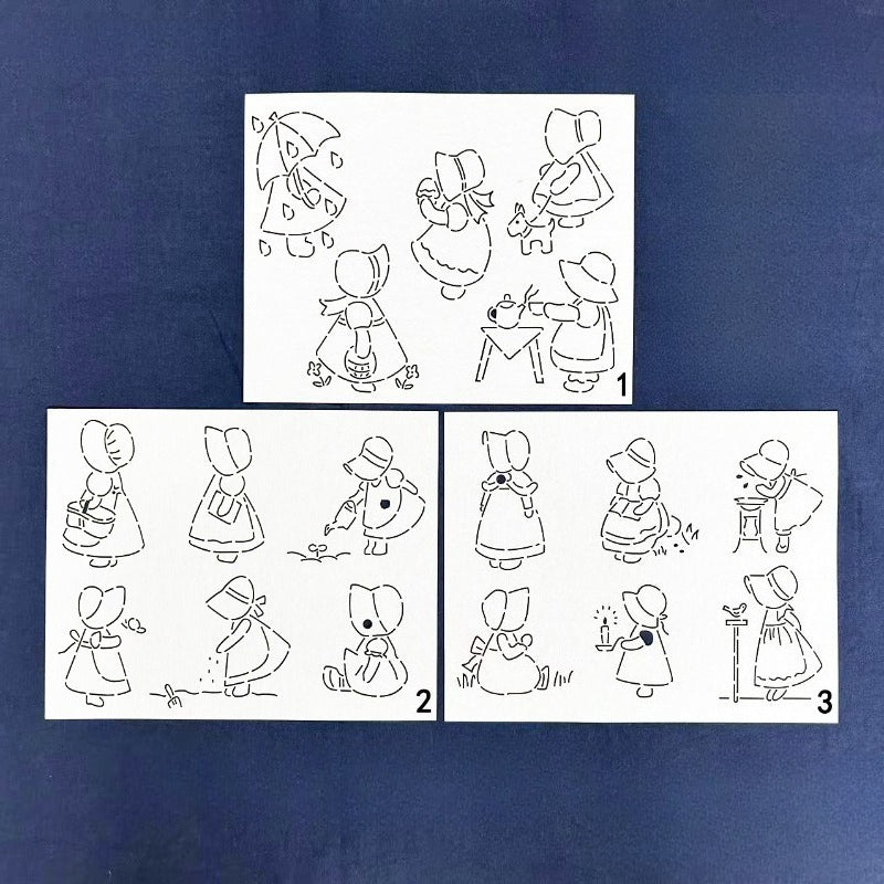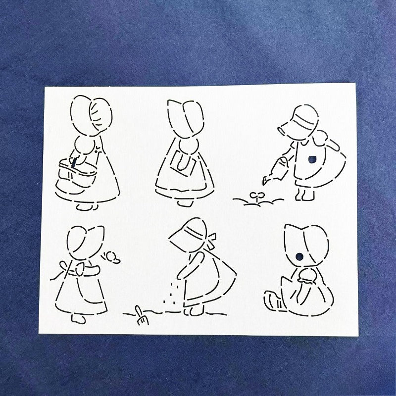 Made from a 0.3 mm thick, opaque polyester fiber composite, these Little Girl Sashiko Stencils are durable, flexible, and bendable. They're reusable and washable, designed for long-lasting use. Unlike traditional sashiko patterns, these creative, cute girl silhouettes depict charming scenes, perfect for adding whimsy to projects. The set offers quick, clean transfers to fabric, eliminating noisy drawing steps. Great for embroidery, needlework, and quilting.